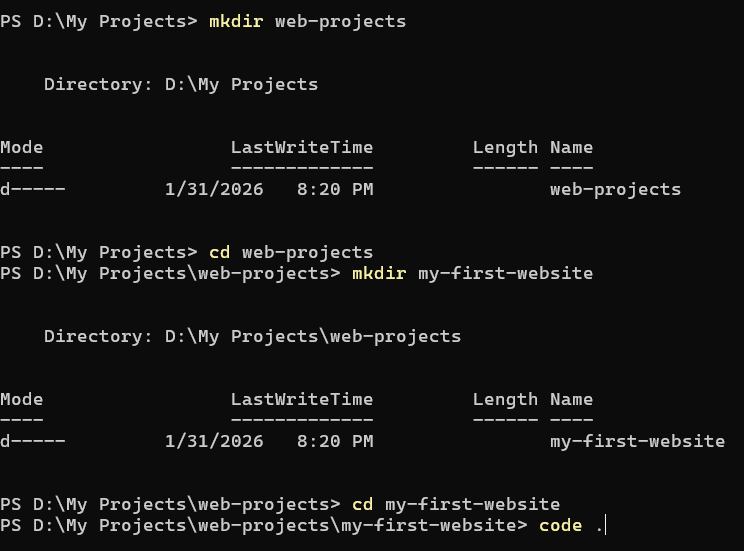 mkdir my-first-website