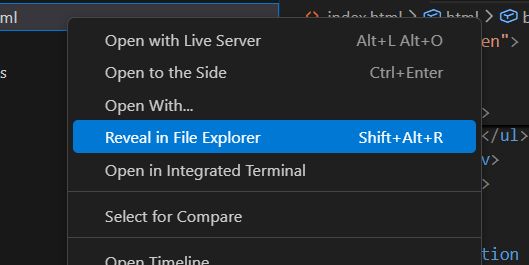 index.html - Select “Reveal in File Explorer” (Windows) or “Reveal in Finder” (macOS)